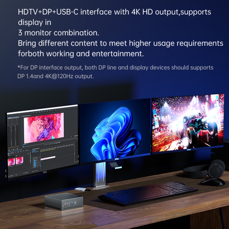 6. Output: HDTV 2.0b/DP1.4/Type-C, three screens output at the same time