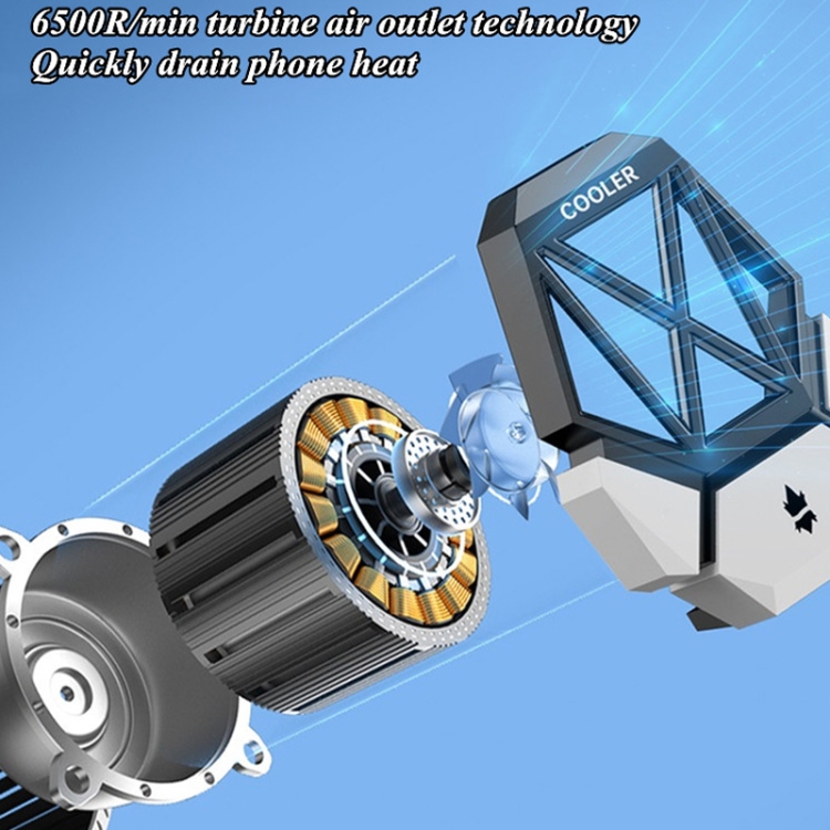 8. 7-blade fan, powerful heat dissipation; 6500R/min turbo airflow technology, quickly exhaust the heat of the mobile phone
