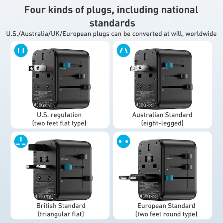 4. The US, Australia, UK, and European plugs can be freely converted to easily solve the problem of charging when traveling around the world.