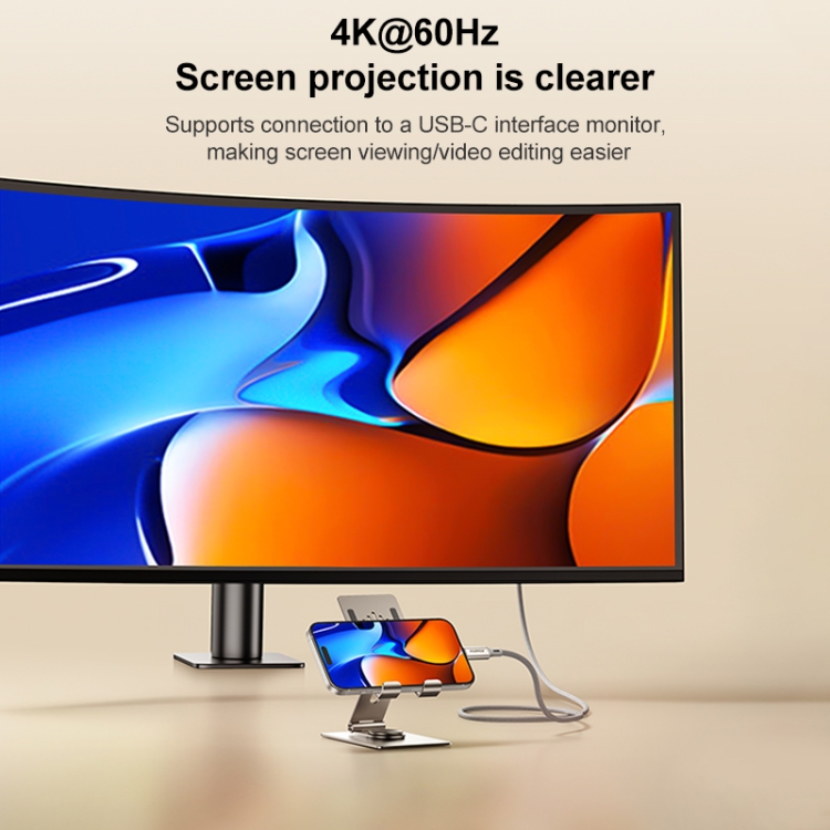 2. 4K 60Hz, the screen projection is clearer, and it supports connecting to a USB-C interface monitor, making it easier to project and watch movies/video editing.