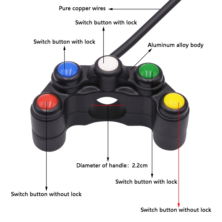 Motorcycle Headlight Auxiliary Light Horn Switches Aluminum Alloy Five-position Faucet Switches with Light
