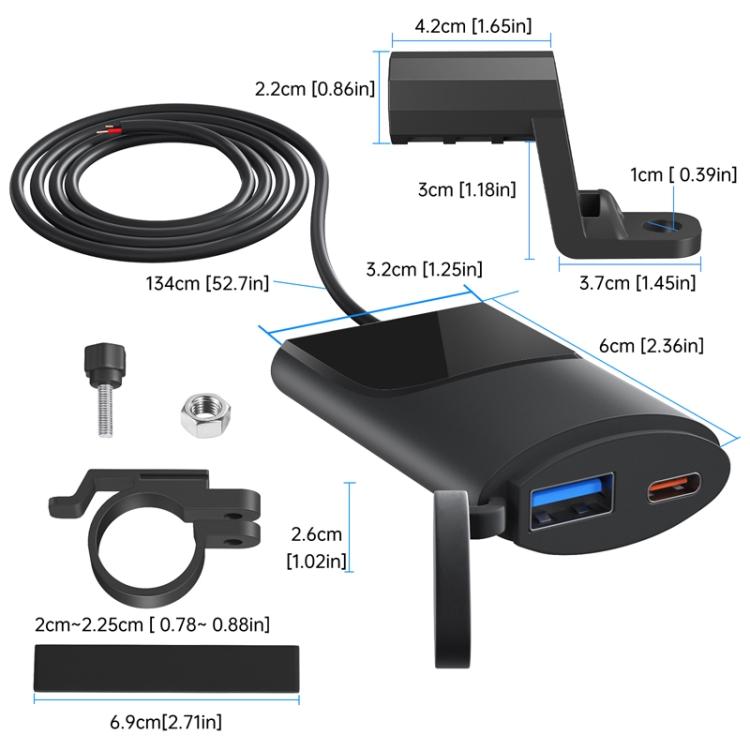 9. Dual fast charging motorcycle A+C charger, equipped with 30W USB-C (PD power supply) and 18W USB-A dual ports