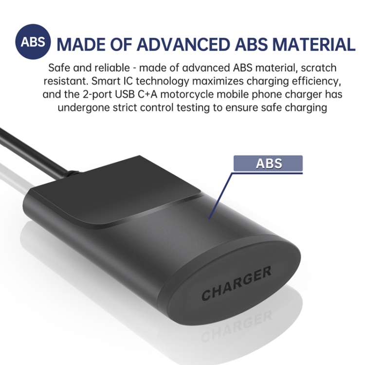 11. 2-port USB C+A motorcycle mobile phone charger has undergone strict control tests to ensure safe charging, and provides a powerful protection system to prevent short circuit, overheating, overcurrent and overcharging