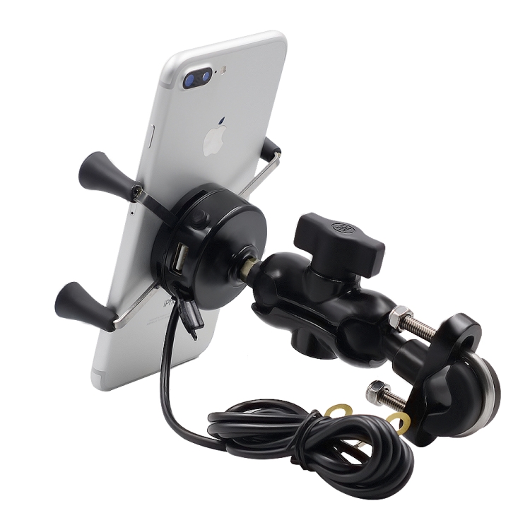 Motorcycle X Shape Aluminum Alloy Phone Bracket 5V 2.1A Phone Charger
