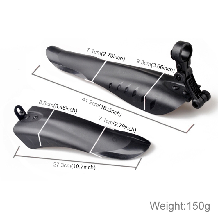2.Package included: Front Bicycle Mudguard x1, Rear Bicycle Mudguard x1, length is 27.3cm and 41.2cm respectively