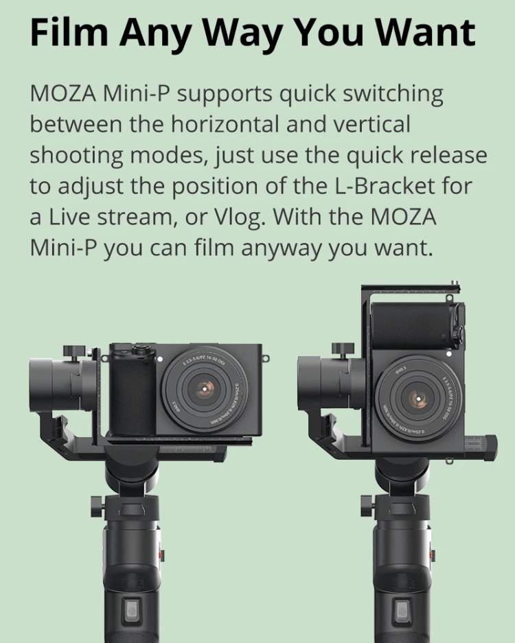 5. Support quick switching between the horizontal and vertical shooting modes, just use the quick release to adjust the position of the L-Bracket for a Live stream or Vlog.