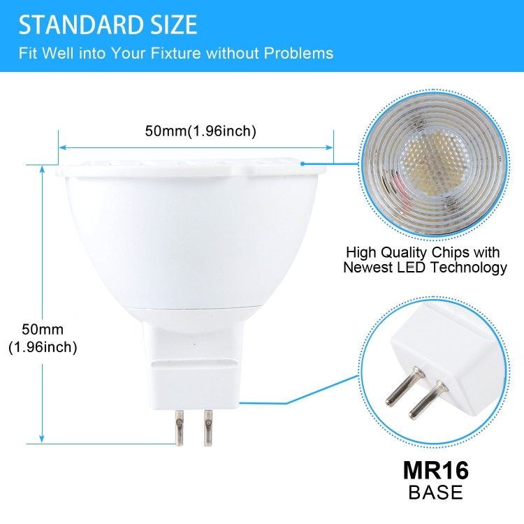 1. Easy Installation: MR16 base, these led bulbs fit well into any standard MR16 recessed lighting fixtures. Just plug and play. Perfect for Landscape, Recessed, Track Lighting, etc.