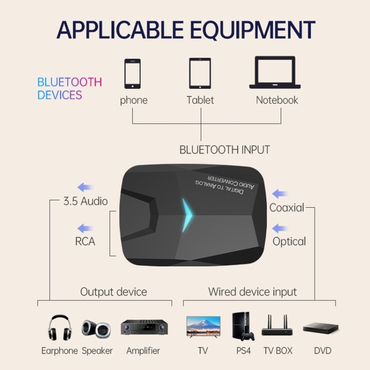 1.Bluetooth Audio Receiver/Digital to Analog Audio Converter/Optical Coaxial Audio Converter