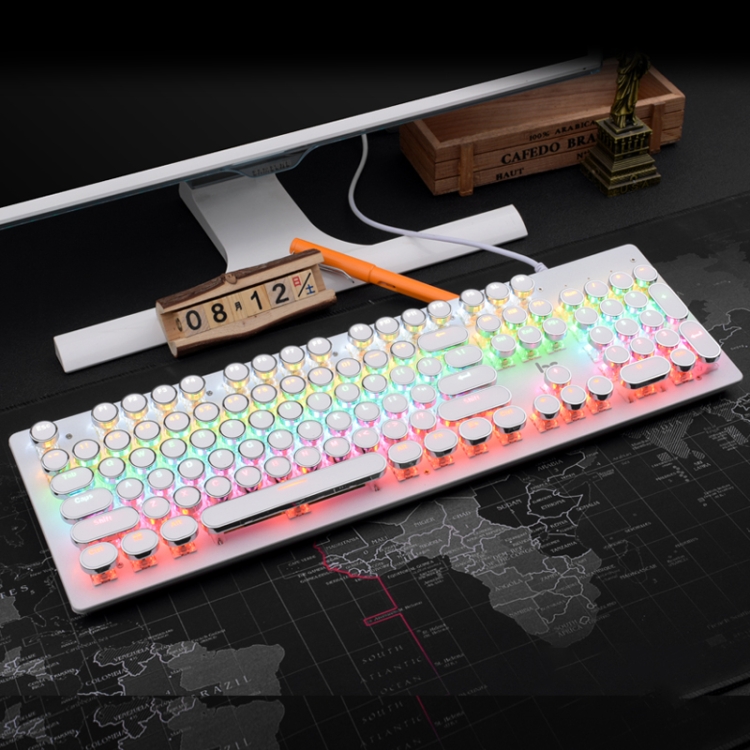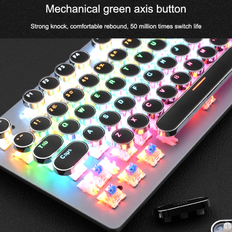 MSEZ HJK920-7 104-keys Electroplated Transparent Character Punk Keycap Colorful Backlit Wired Mechanical Gaming Keyboard, Support Autonomous Shaft Change