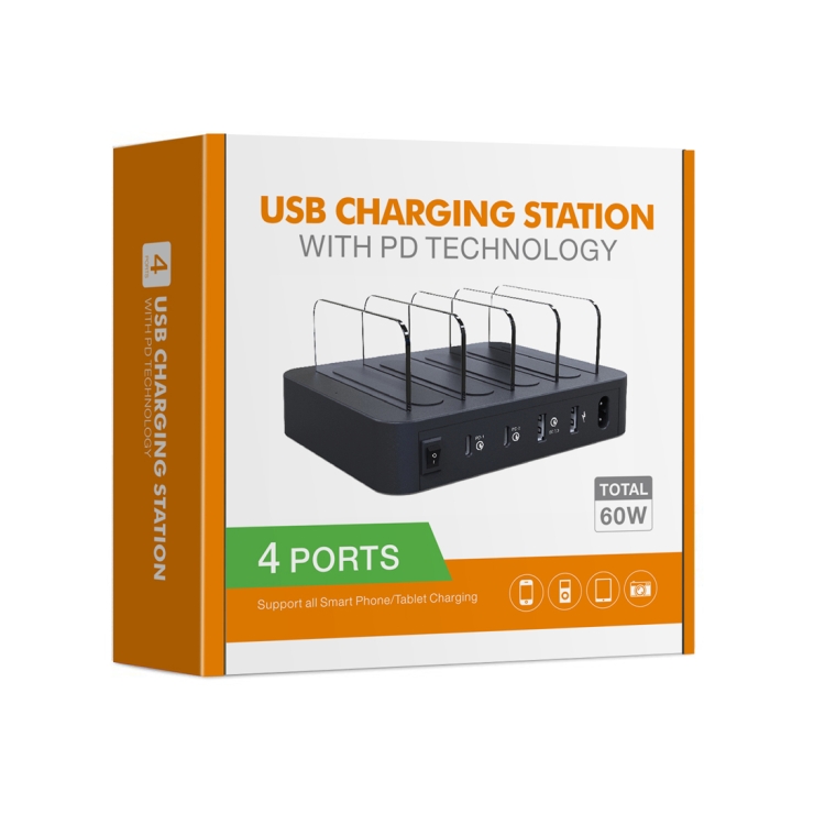 Multi-function AC 100V~240V Output 4 Ports USB-C / Type-C Double PD Detachable Charging Station Smart Charger,Support QC3.0