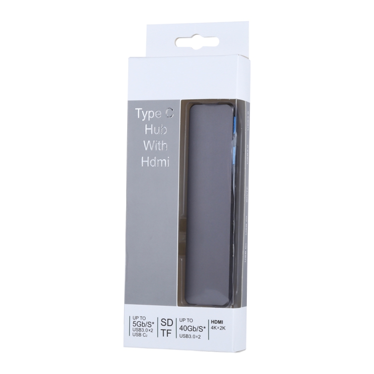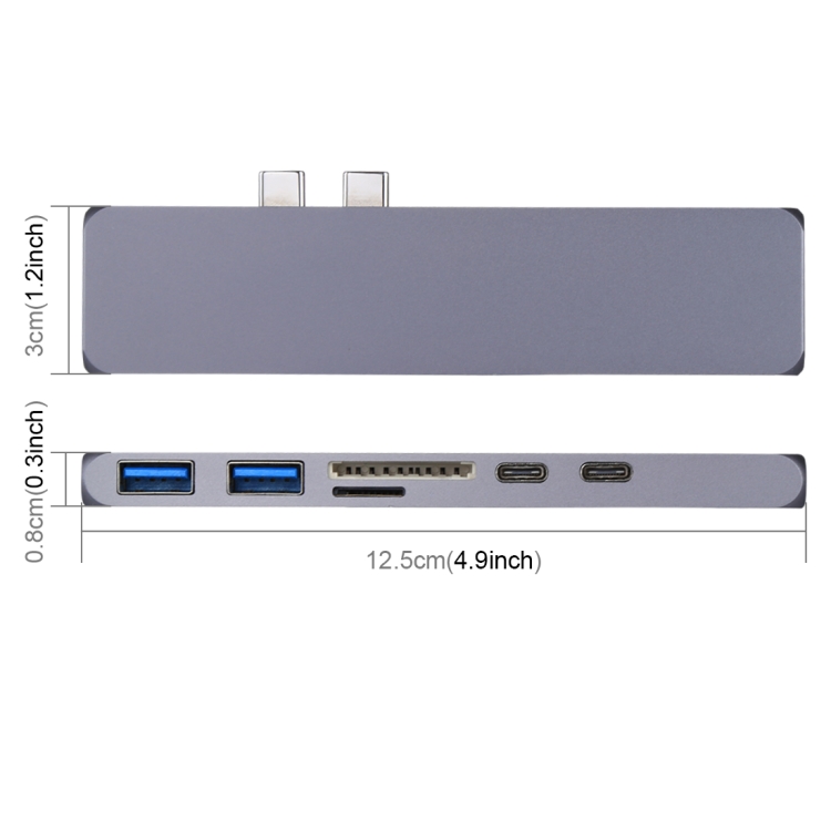 Multi-function Aluminium Alloy Dual USB-C / Type-C HUB Adapter with HDMI Female & 2 x USB 3.0 Ports & 2 x USB-C / Type-C Ports & SD Card Slot & TF Card Slot