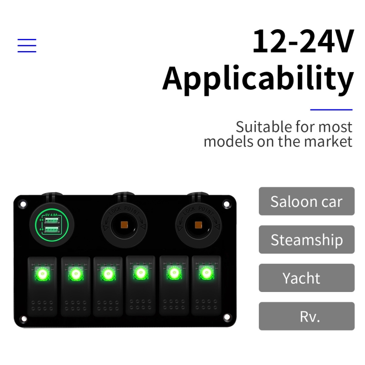 Multi-functional Combination Switch Panel 12V / 24V 6 Way Switches + Dual USB Charger for Car RV Marine Boat