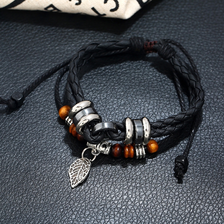 Multi-Layers Braided Leaf Charm Bracelet Simple Personalized Hand Band