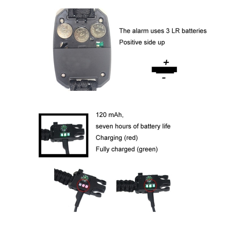 Long press the alarm button to trigger a high-decibel alarm sound;