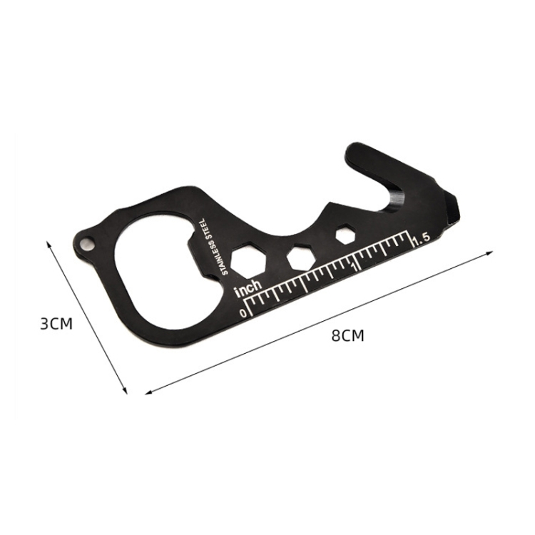 6. Function: keychain/bottle opener/rope cutter/inch scale/(4/5.5/7mm) flat file/hex wrench