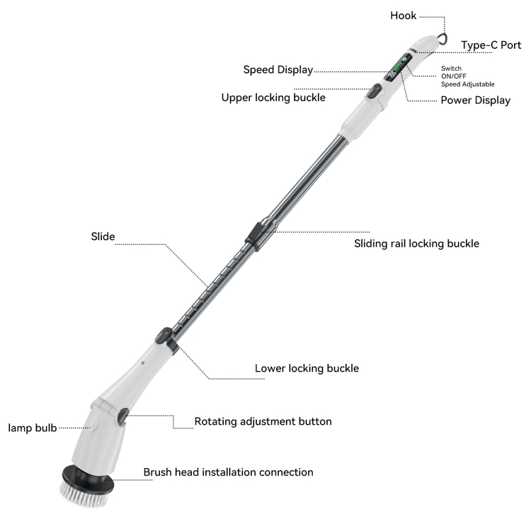 Multifunctional Long and Short Dual Purpose Electric Cleaning Brush Kitchen Bathroom Window Floor Brush