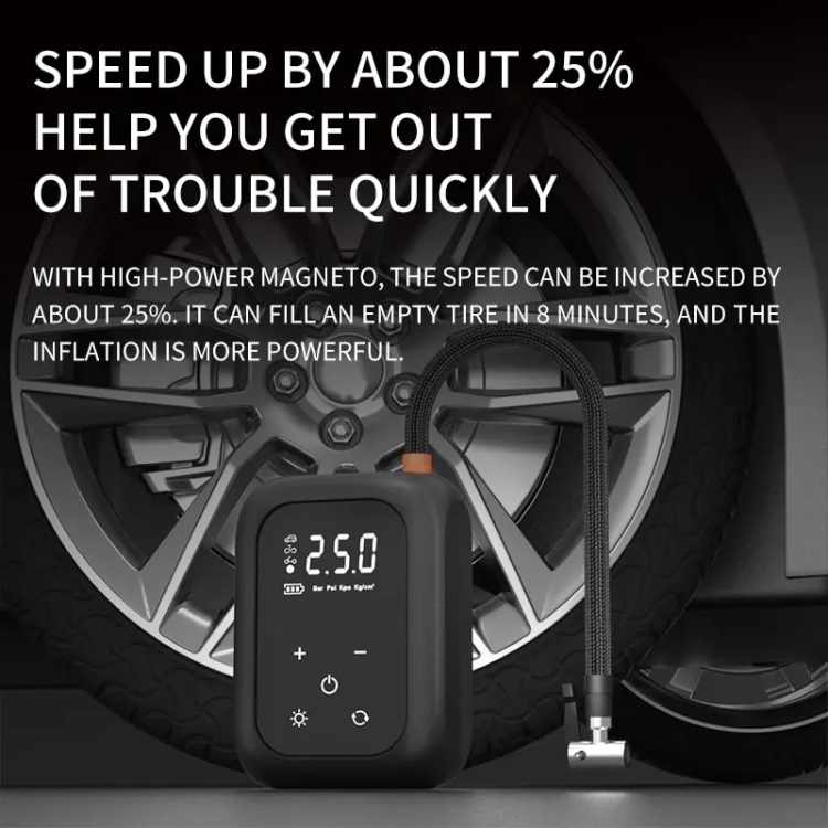 4. Equipped with a high-power magnetic motor, the speed is increased by about 25 percent, and an empty tire can be filled in 8 minutes, making the inflation more powerful.