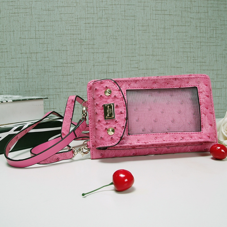Multifunctional Touch Screen Hanging Neck Ostrich Pattern Mobile Phone Bag Women One-Shoulder Messenger Mini Coin Purse, Rose Red, Brown