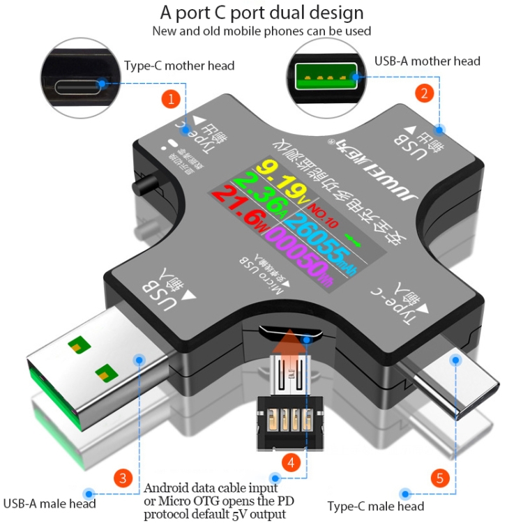 1. This instrument can monitor voltage, current, capacity, electric quantity, power, load impedance, D+/D- voltage, charging time and other data of USB