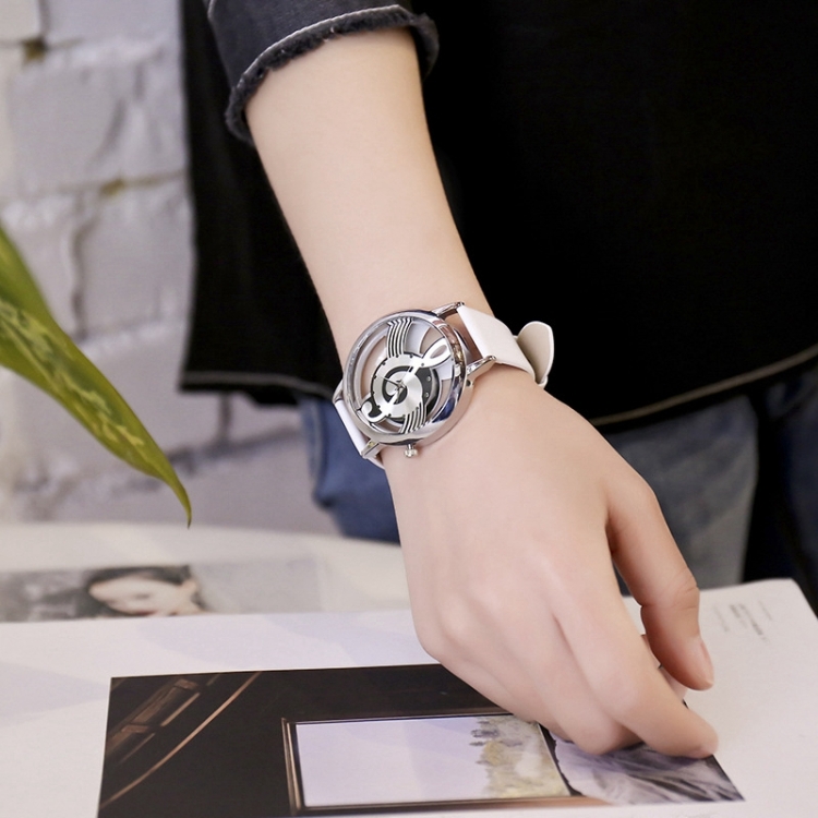 Musical Notation Shaped Dial Leather Belt Quartz Watch for Women / Men