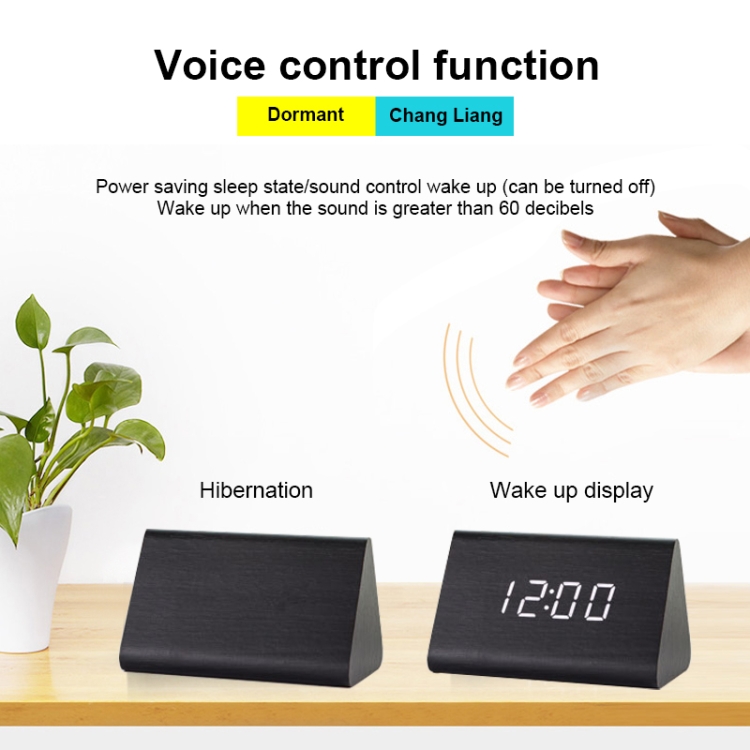 Mute Luminous Electronic Clock Wooden Sound Control Small Triangle Alarm Clock