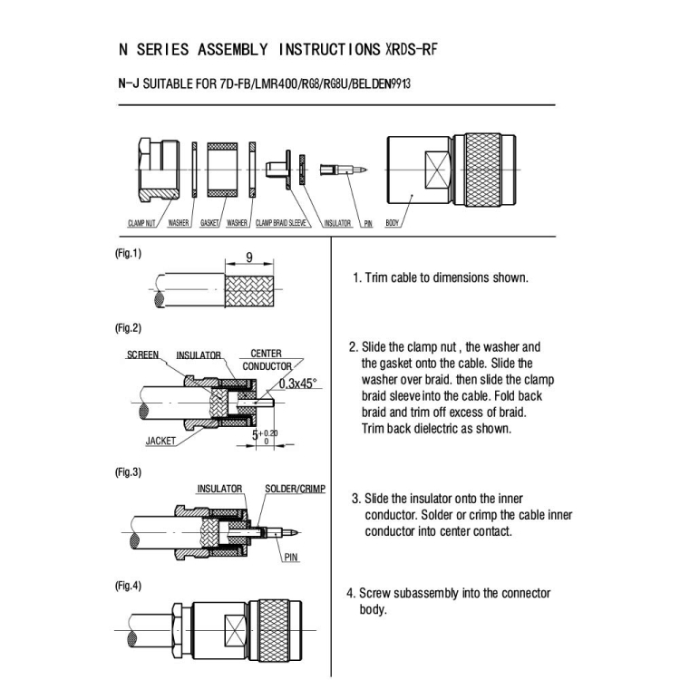 | Option | N Female Crimp, N Male, N Female, UHF Male |