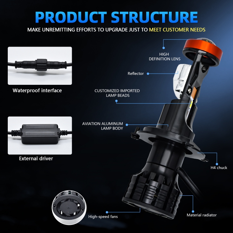 4. The drive scheme adopts an external constant current intelligent temperature control module (intelligently control the current to maximize the LED efficacy, protect the lights and improve driving safety).