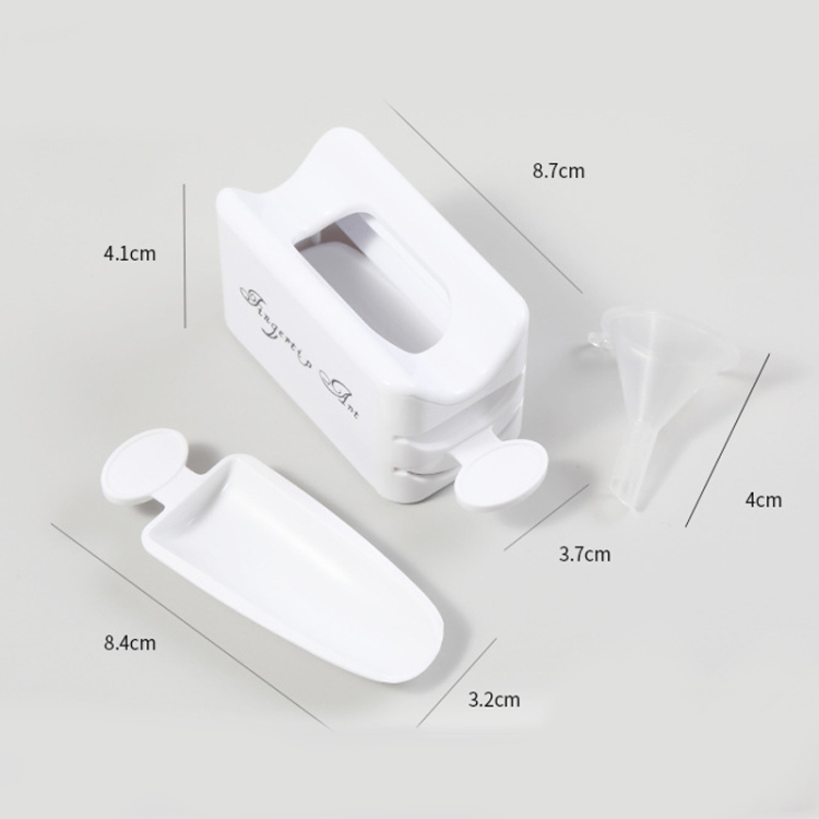 3. Size: box size 8.7×3.7 cm, recessed spoon size 8.4×3.2 cm