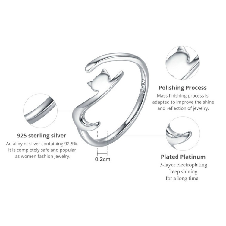 Naughty Cat Sterling Silver Ring Fashion Open Ring