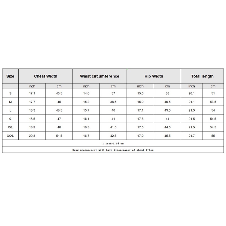 | Size | Bust | Waist circumference | Hips | Total length | ||||