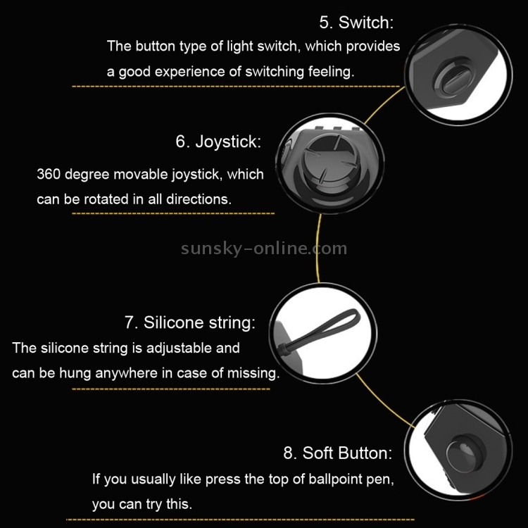 6. Joystick: 360 degree movable joystick, which can be rotated in all directions.
