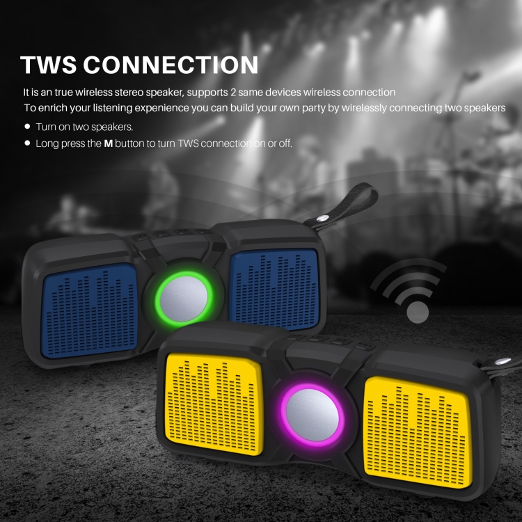 4. Support Bluetooth connection/hands-free call/FM radio/USB, TF card, AUX audio playback/cyclic charging/TWS serial function
