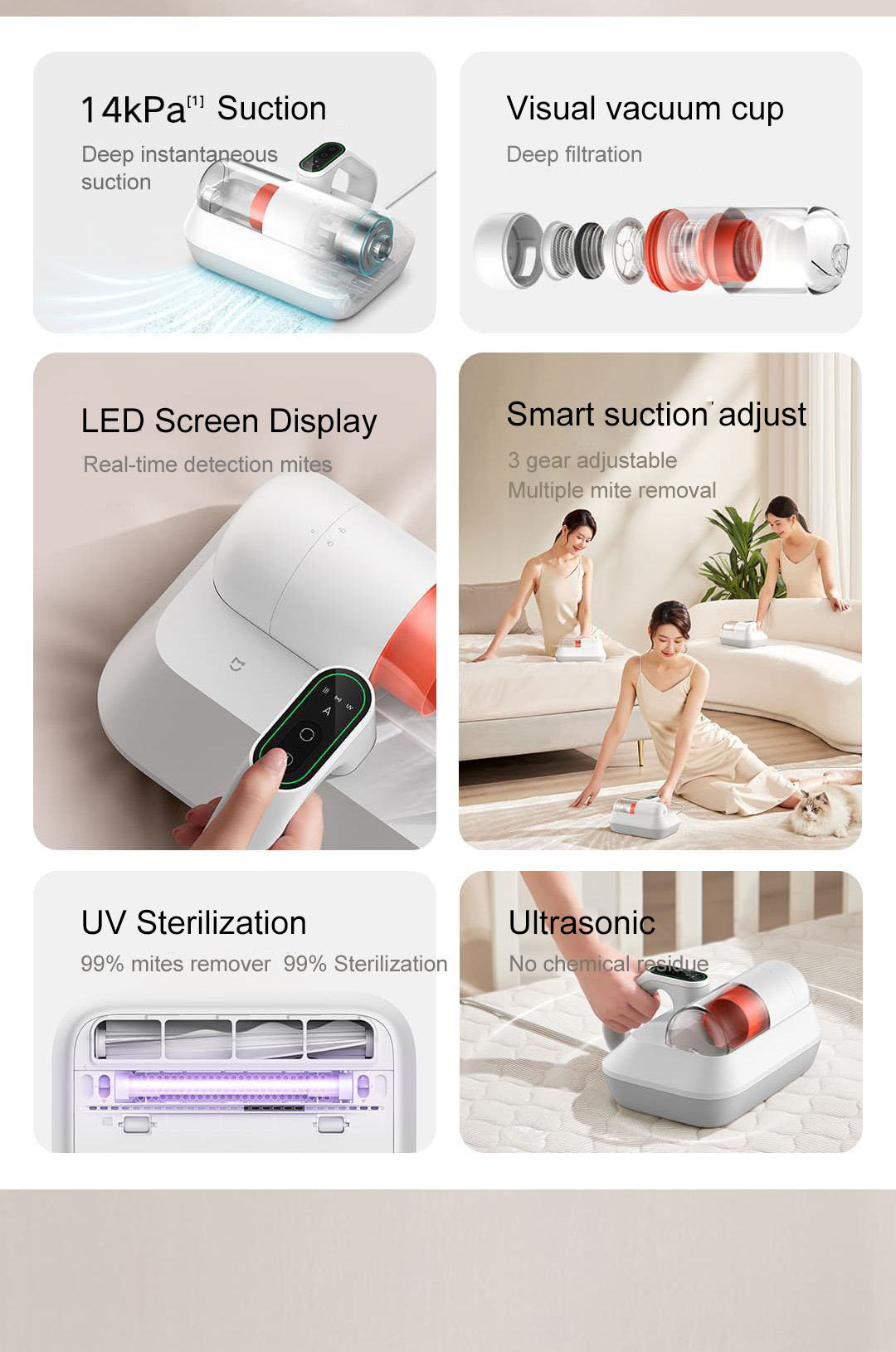 New Xiaomi Mijia Mite Removal Instrument Pro Hot Air Removal UV-C Mite Removal Multifunctional Filtration Suction 14kPa