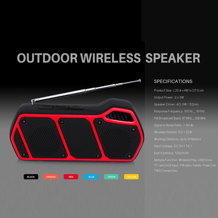 NewRixing NR-5011fm Outdoor Portable Bluetooth Speakerr, Support Hands-free Call / TF Card / FM / U Disk