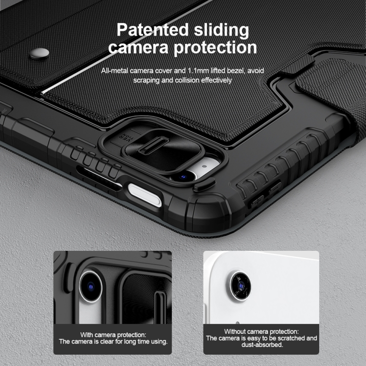 5. All-metal camera cover and 1.1mm lifted bezel, avoid scraping and collision effectively