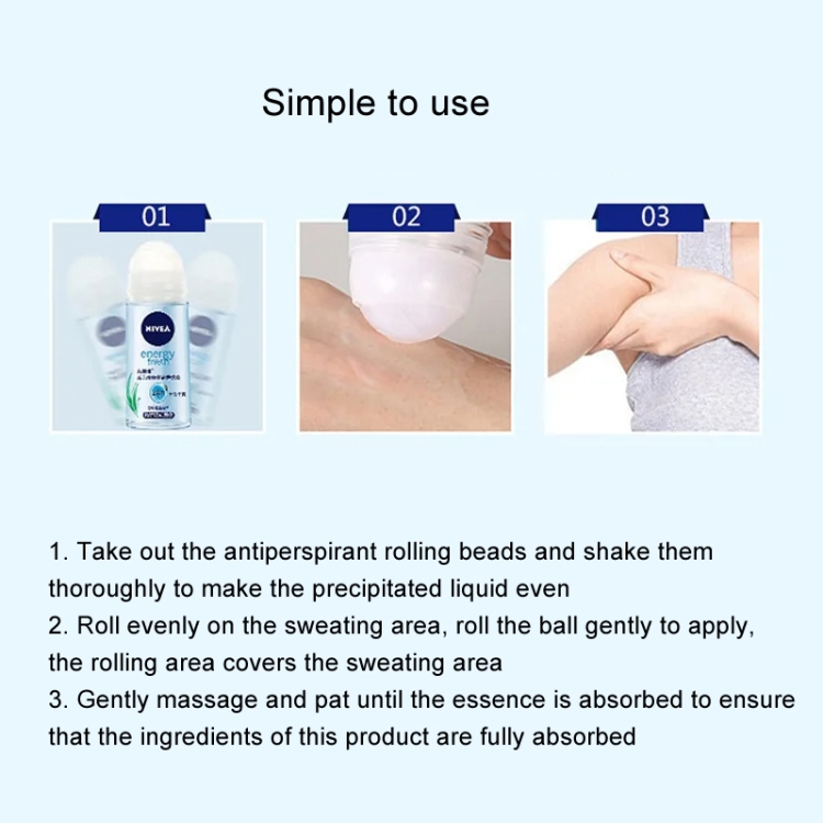2. Roll evenly on the sweating area, roll the ball gently to apply, and the rolling area covers the sweating area