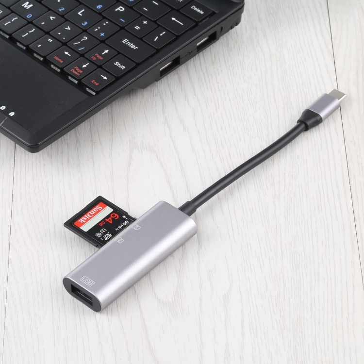 NK-3040 3 in 1 USB-C / Type-C Male to USB Female + SD / TF Card Slots Adapter SD / TF Card Reader