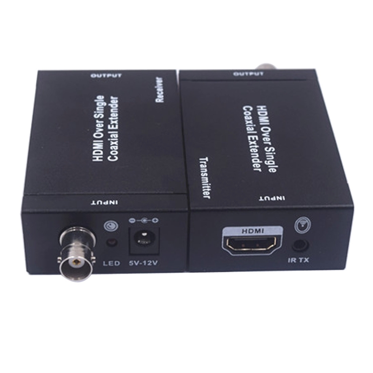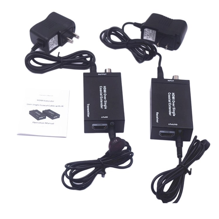 The HDMI Over Single Coax Extender sends HDMI signals Over just one 75Ohm Coaxial cable — up to100m away. The HDMI Over Single Coax Extender supports HDMI 1.3 and HDCP 1.1 with features such as Deep Color and 1080p.By using standard and widely available 75Ohm RG-6U cables, the HDMI Over Single Coax Extender makes HDMI signal extensions to be easier than heavy and expensive copper cable and more robust than optical fiber. The Extender includes two units: transmitter and receiver. The transmitting unit is used to capture the HDMI input with IR signals and carries the signals via one coaxial cable. The receiving unit is responsible for equalizing the transmitted HDMI signal and reconstructing IR and serial control signals. The Extender offers the most convenient solution for HDMI extension over a single coaxial cable with long distance capability, and is the perfect solution for any application.