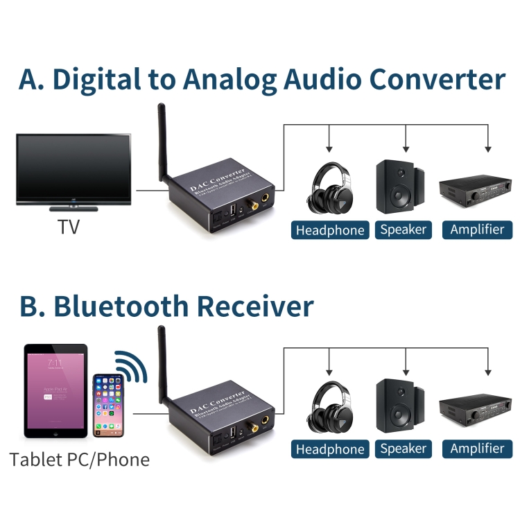 1. The digital to analog audio converter is designed for home or professional audio switching