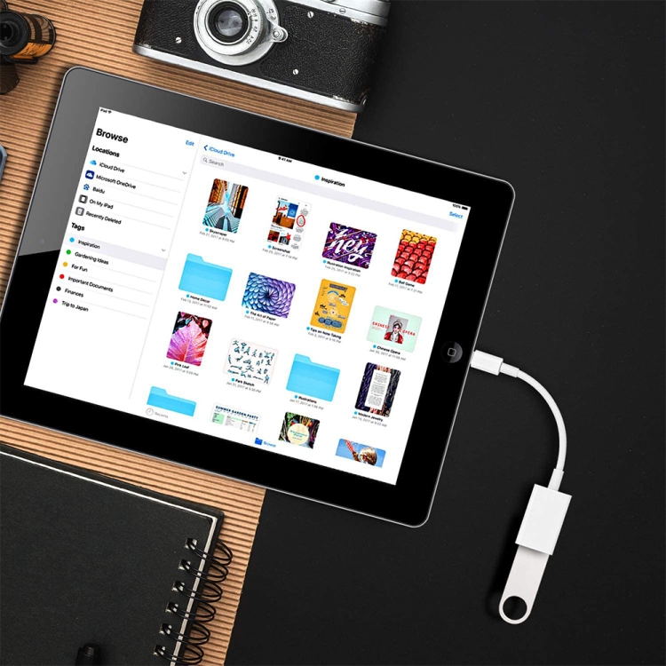 3. You can use a data cable and converter to directly import photos from a digital camera to the device.
