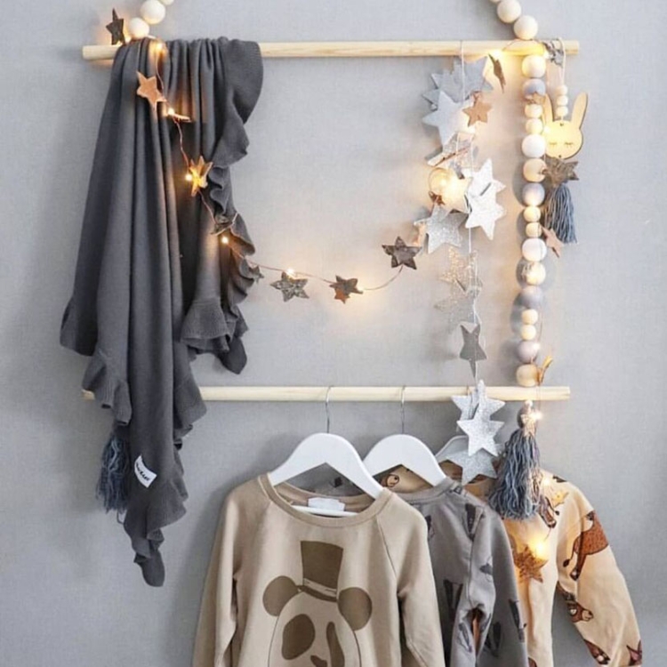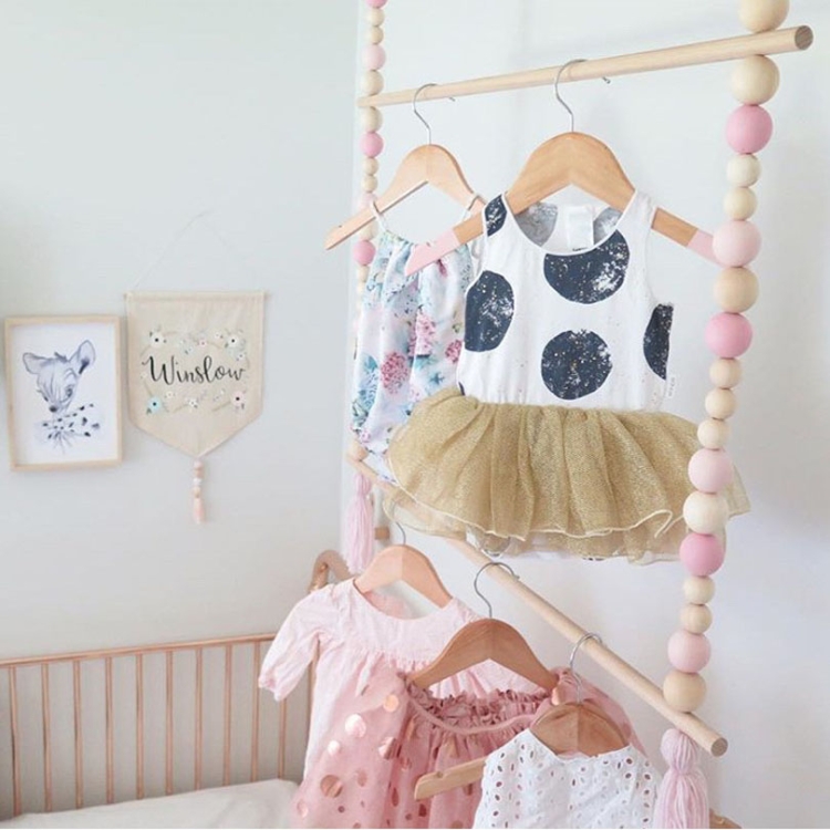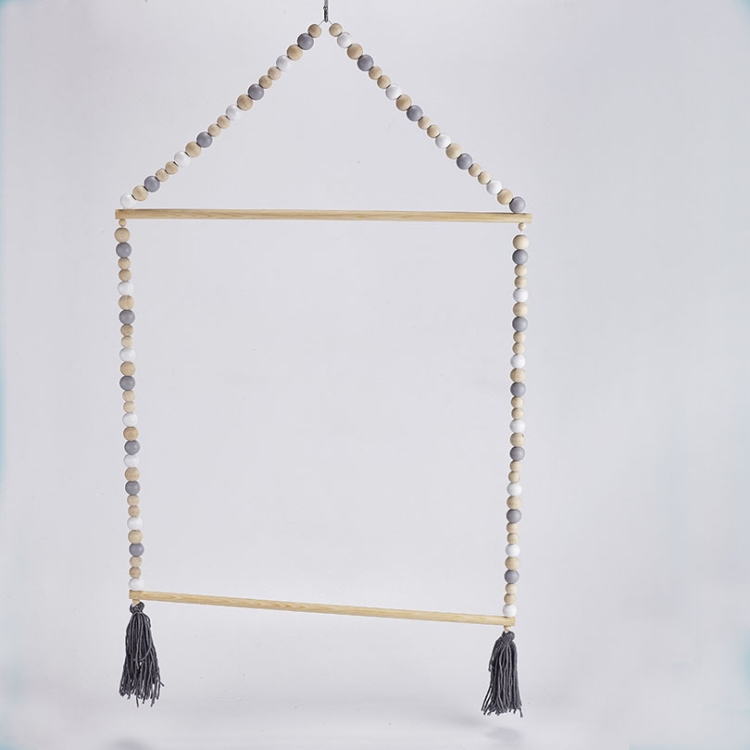 Nordic Style Wooden Color Macaron Wooden Beads String Single Hook Hanger Wardrobe Storage Pendant
