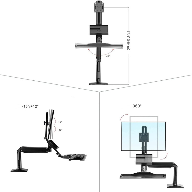 NORTH BAYOU NB35 Ergonomic 19-27 Inch Monitor Holder with Foldable Keyboard Tray Full Motion Sit-Stand Workstation