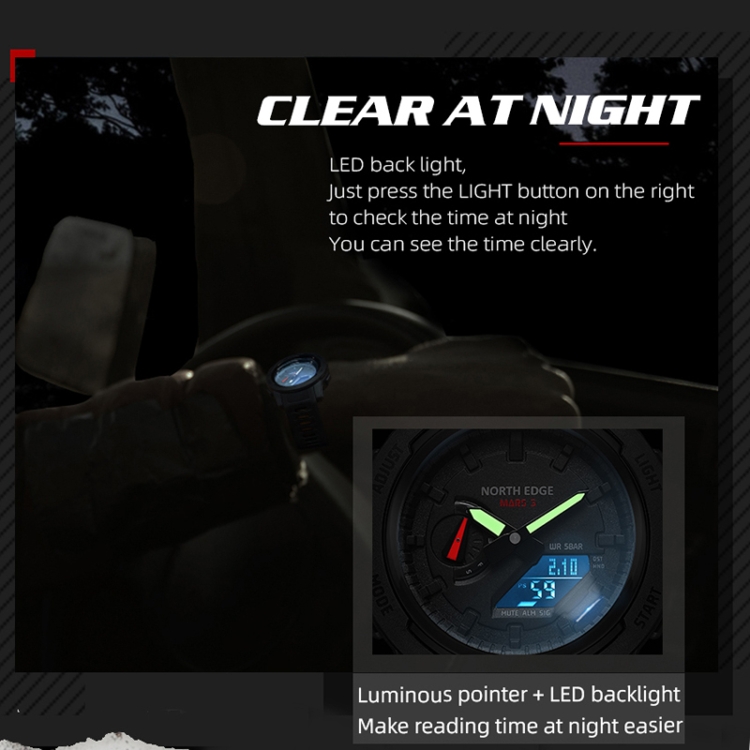 NORTH EDGE MARS3 Outdoor Waterproof Men Carbon Fiber Electronic Sports Watch