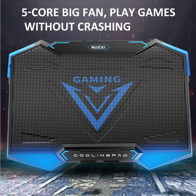 NUOXI 5 Fans Laptop Radiator Bracket Height Adjustable with Dual USB Ports