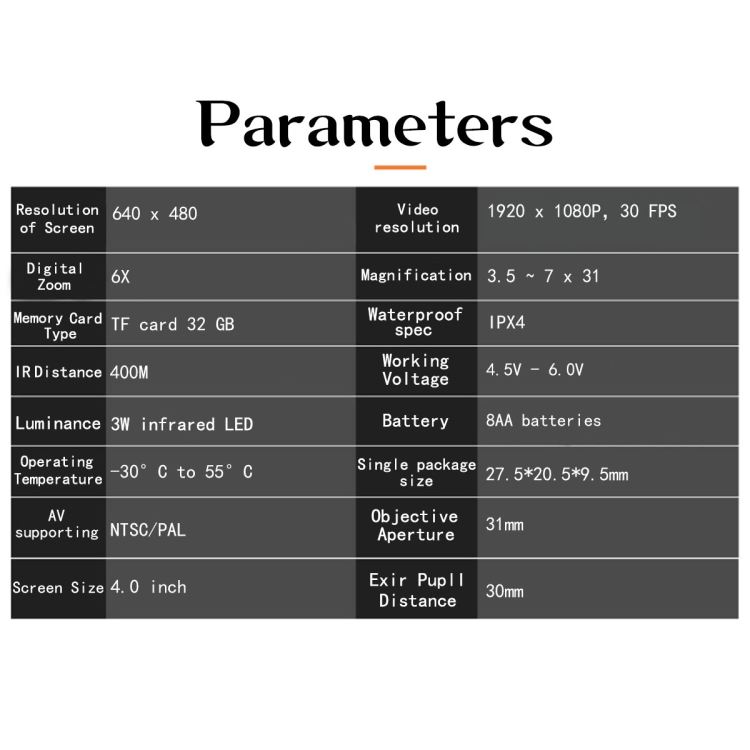 5. Infrared light: 1 850 LED, can shoot 400-450 meters away