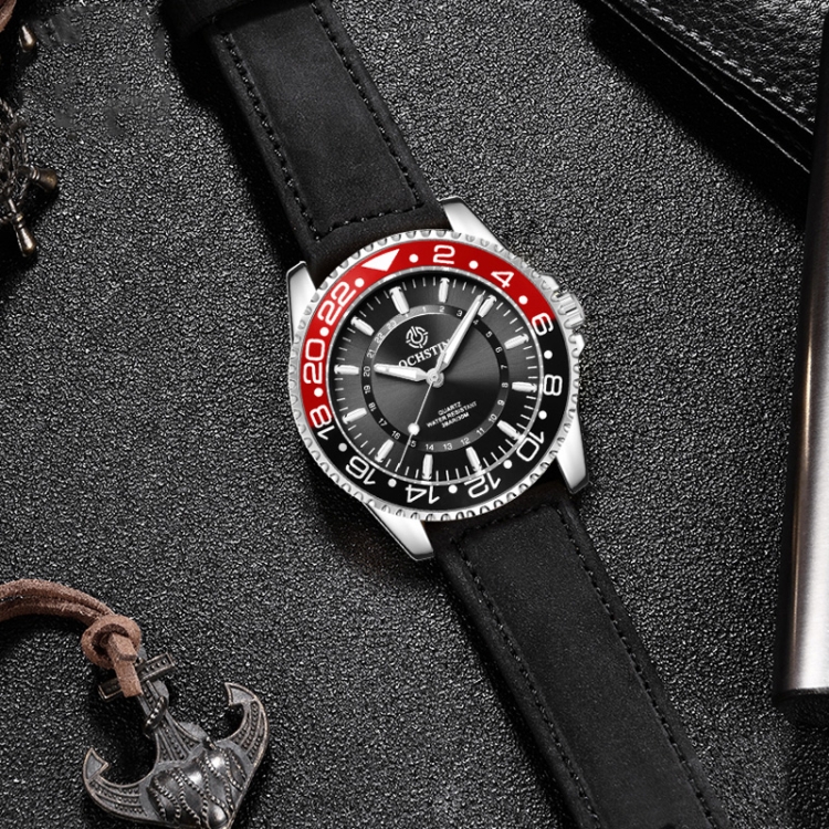 Ochstin 5019G Fashion Business Waterproof Leather Strap Quartz Watch