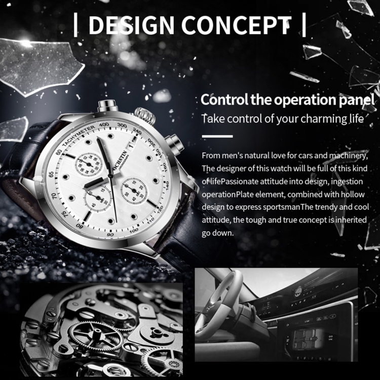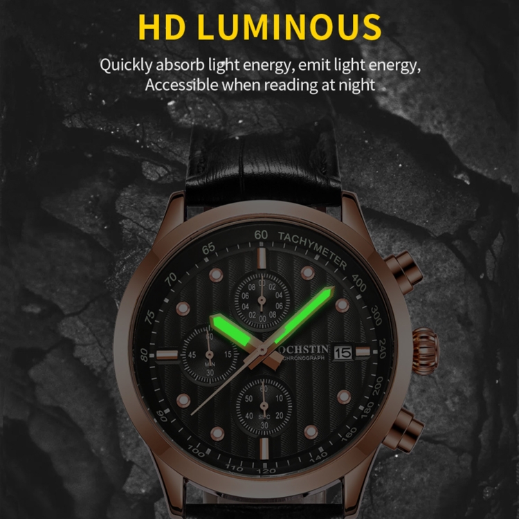Ochstin 6042B Multifunctional Business Leather Waterproof Luminous Quartz Men Watch