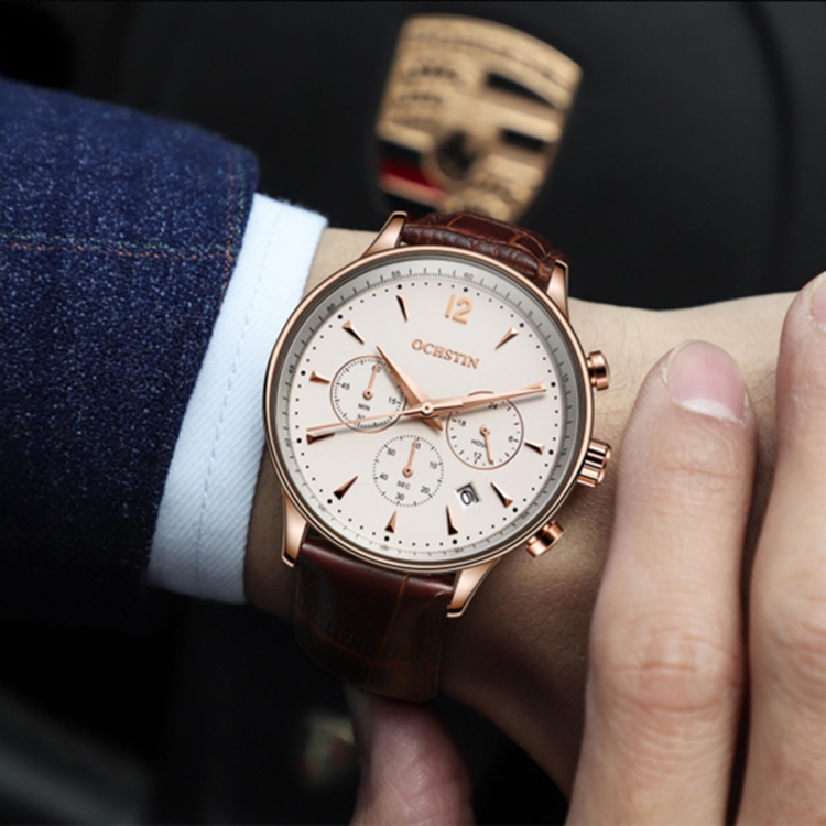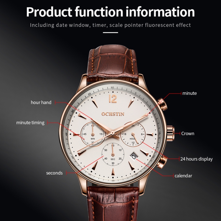 Ochstin 6050A Multifunctional Quartz Men Leather Watch