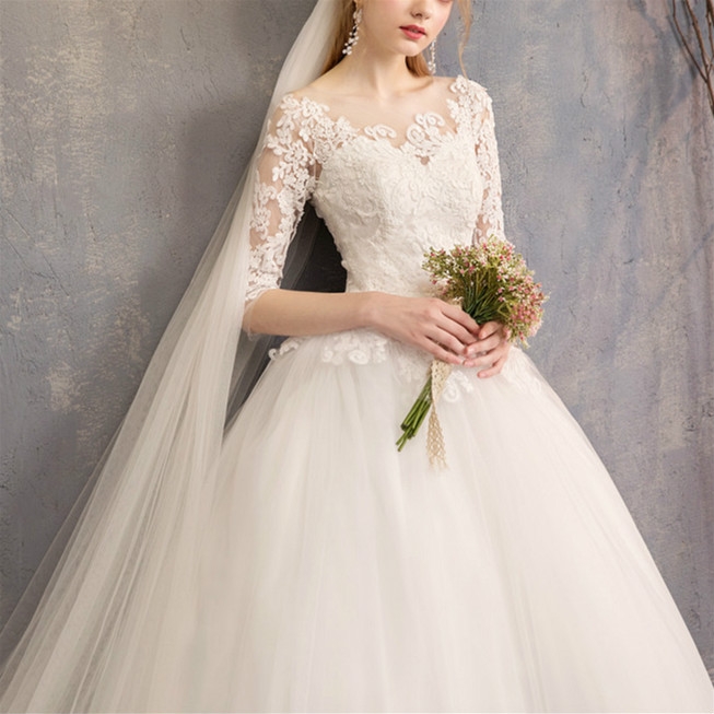 Off Shoulder Half Sleeved Lace Trailing Slimming Wedding Dress