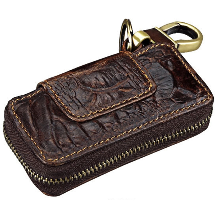 Oil Leather Hanging Waist Car Key Retro Zipper Bag